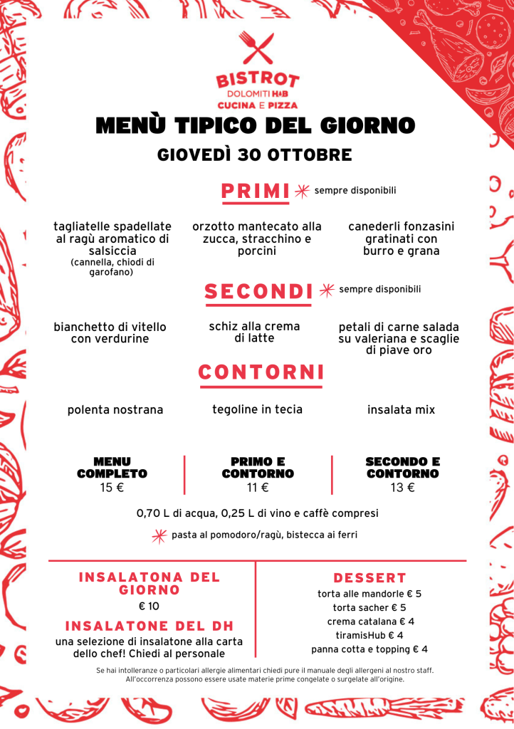 La proposta di Dolomiti Hub per la pausa pranzo dal lunedì al venerdì.