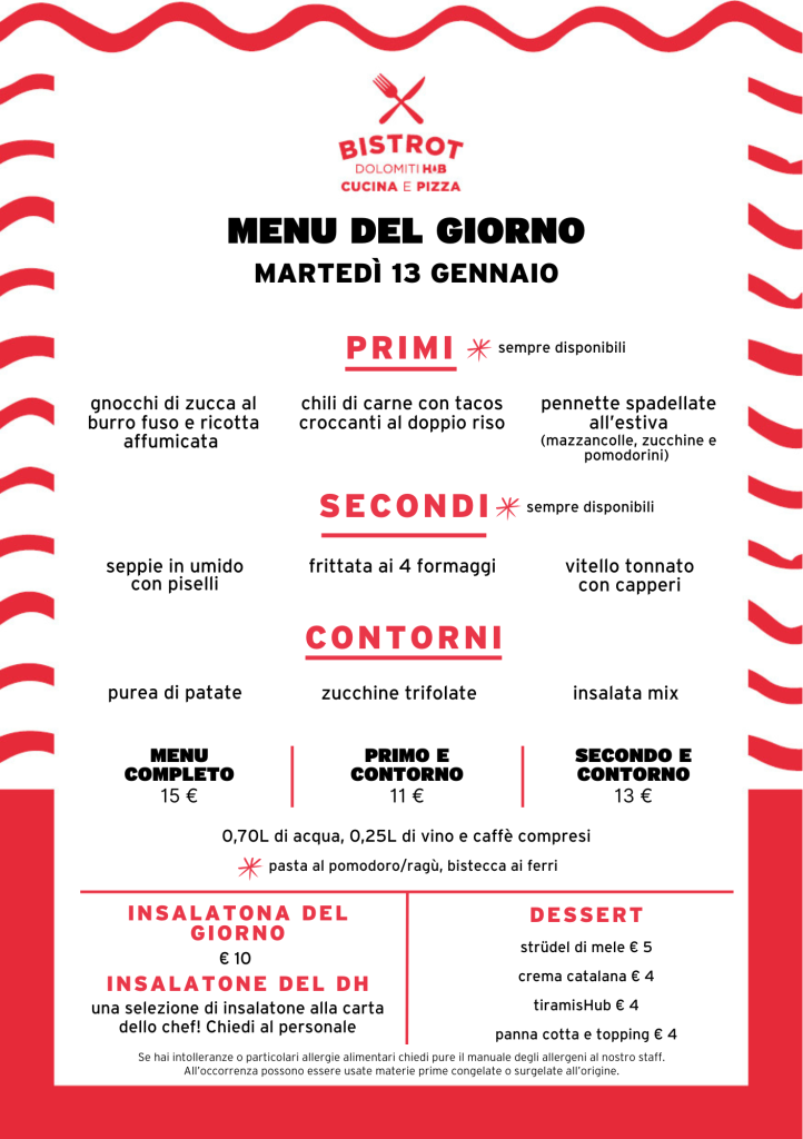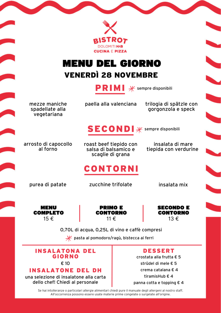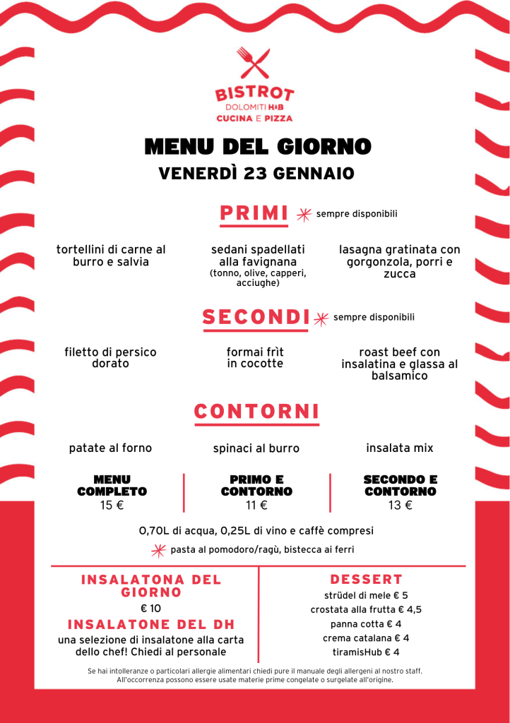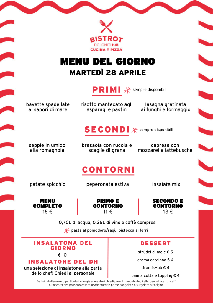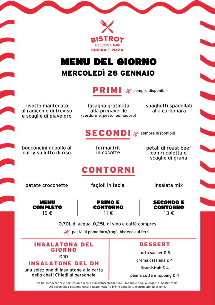 La proposta di Dolomiti Hub per la pausa pranzo dal lunedì al venerdì.