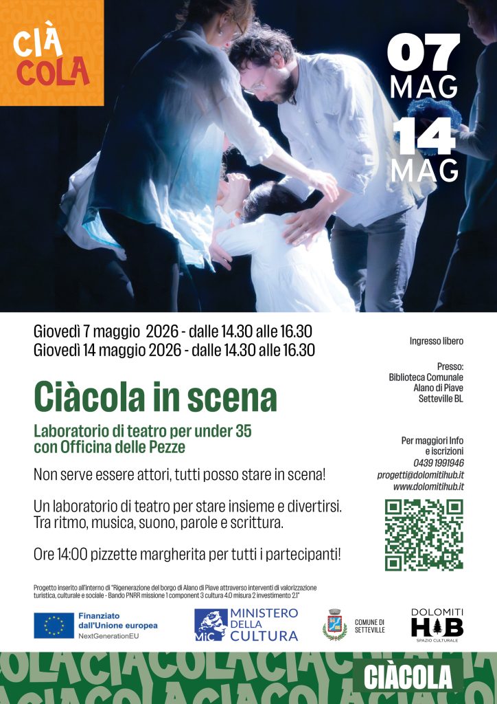 Un laboratorio dedicato agli under 35 insieme a Officina delle Pezze, pensato per chi ha voglia di mettersi in gioco e vivere il palcoscenico in modo libero e creativo. Non serve essere attori: tutti possono stare in scena!