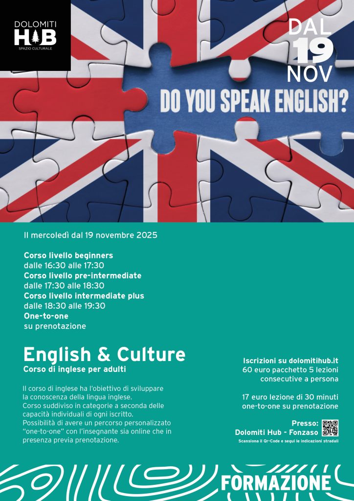 Dal 15 ottobre al 20 maggio corsi di inglese a seconda del livello: